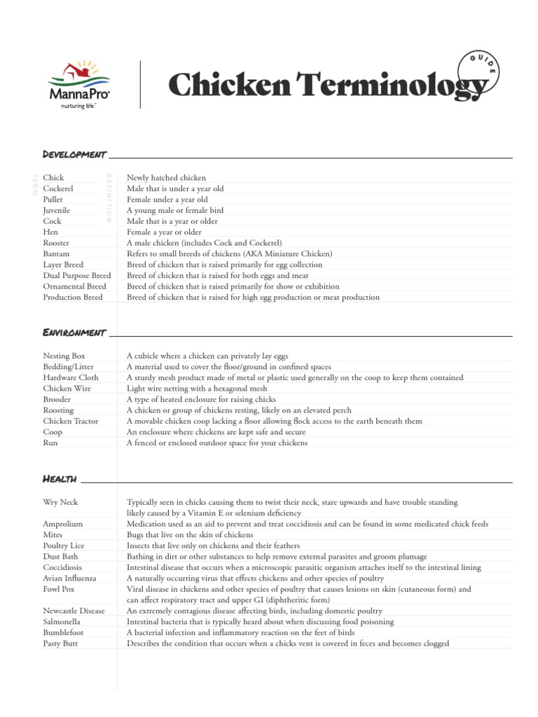 MannaPro Chicken Terminology 21 0 PDF Chicken Poultry Farming